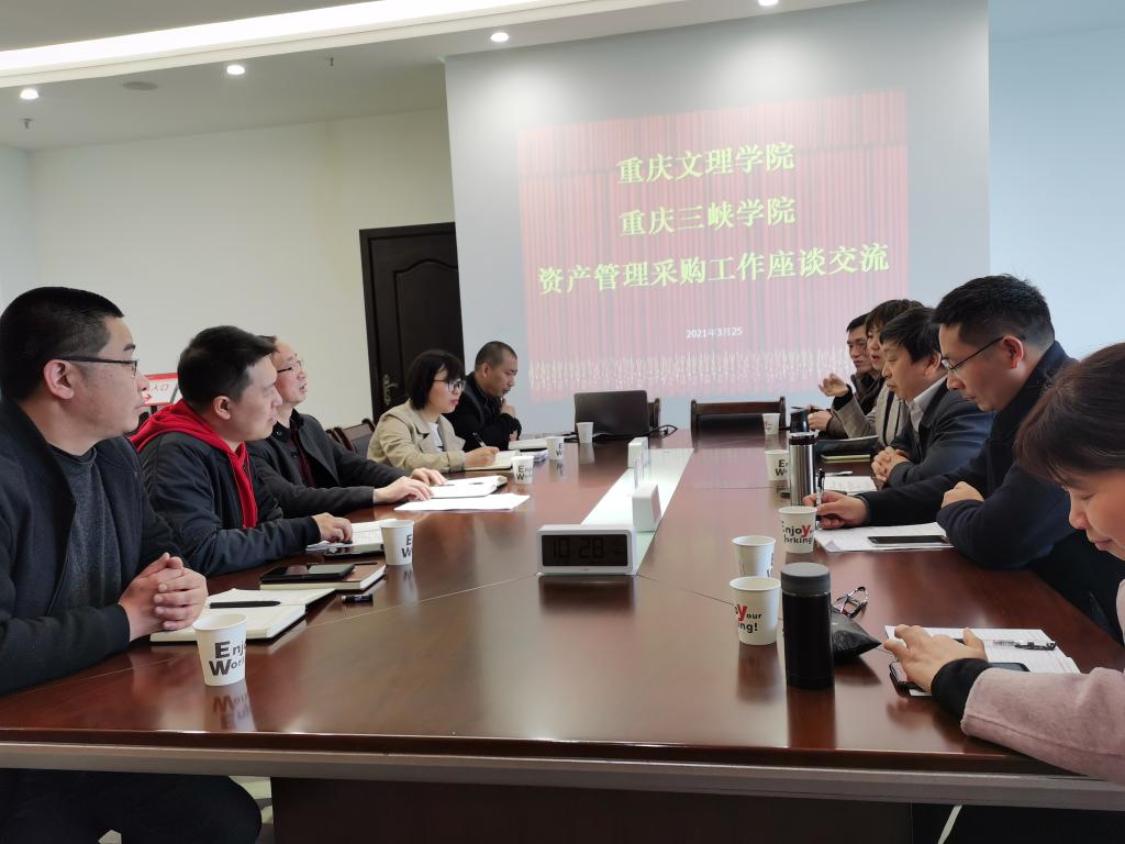 2021年3月25日,重庆文理学院国资处苏兴文处长一行来我处交流,应宏处长率我处科室负责人等接待苏兴文一行,在科技楼801会议室进行了工作座谈交流。